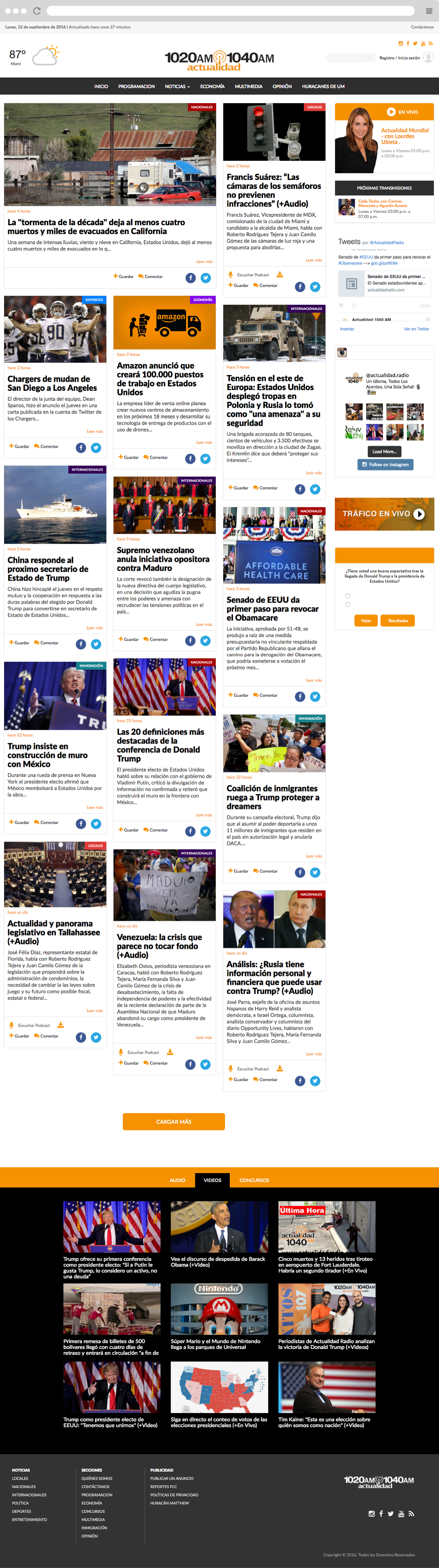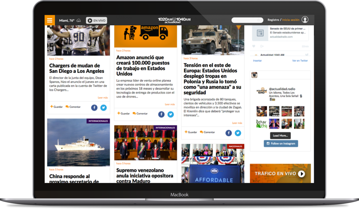 Responsive Website Design for Radio Actualidad, a local Radio Station situated in Miami, oriented to the latin community.